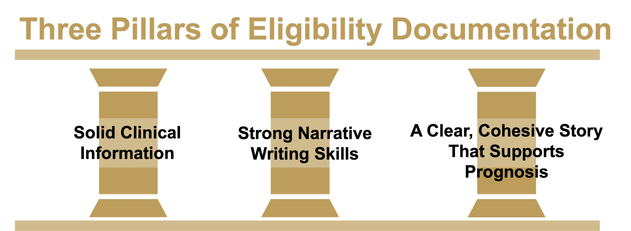 At its best, eligibility documentation rests on three pillars: solid clinical information, strong narrative writing skills, and a clear, cohesive story that supports prognosis.
